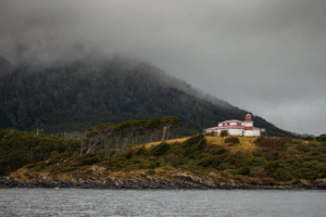 You will find an inn from which you can access the lighthouse, where you will have to climb some wooden steps—carefully, as some are not very sturdy—to reach the top. From there, you will have a breathtaking view of the Strait of Magellan, Dawson Island, and the Darwin Mountain Range.